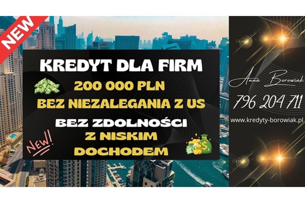 KREDYT DLA FIRM DO 200 000 PLN NA UPROSZCZONYCH ZASADACH! BEZ NIEZALEGANIA Z US!